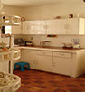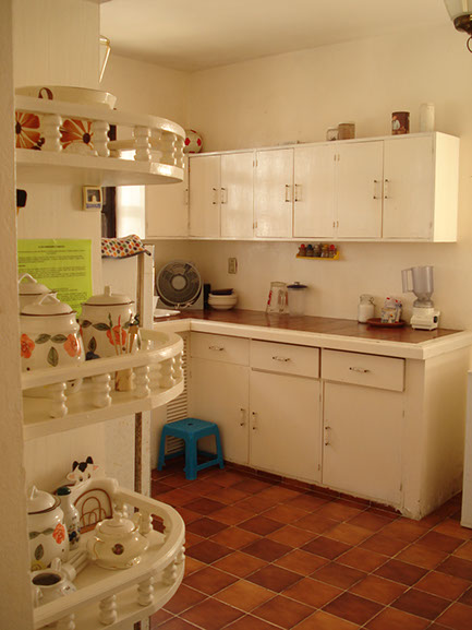 Cocina integral con refrigerador , congelador, utensilios y microondas.